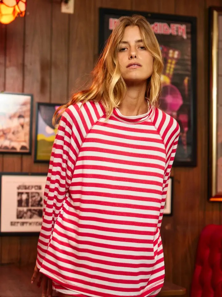 Beach House Top Effortlessly chic and undeniably comfortable, this oversized raglan sleeve top features a mock neck design that adds subtle sophistication to your everyday wardrobe. Crafted from a super soft, lightweight fabric, it's engineered for all-day wear without the weight. The relaxed fit and breathable construction make it an ideal layering piece for transitional seasons or a standalone statement for casual elegance. Perfect for those who refuse to compromise between style and comfort.