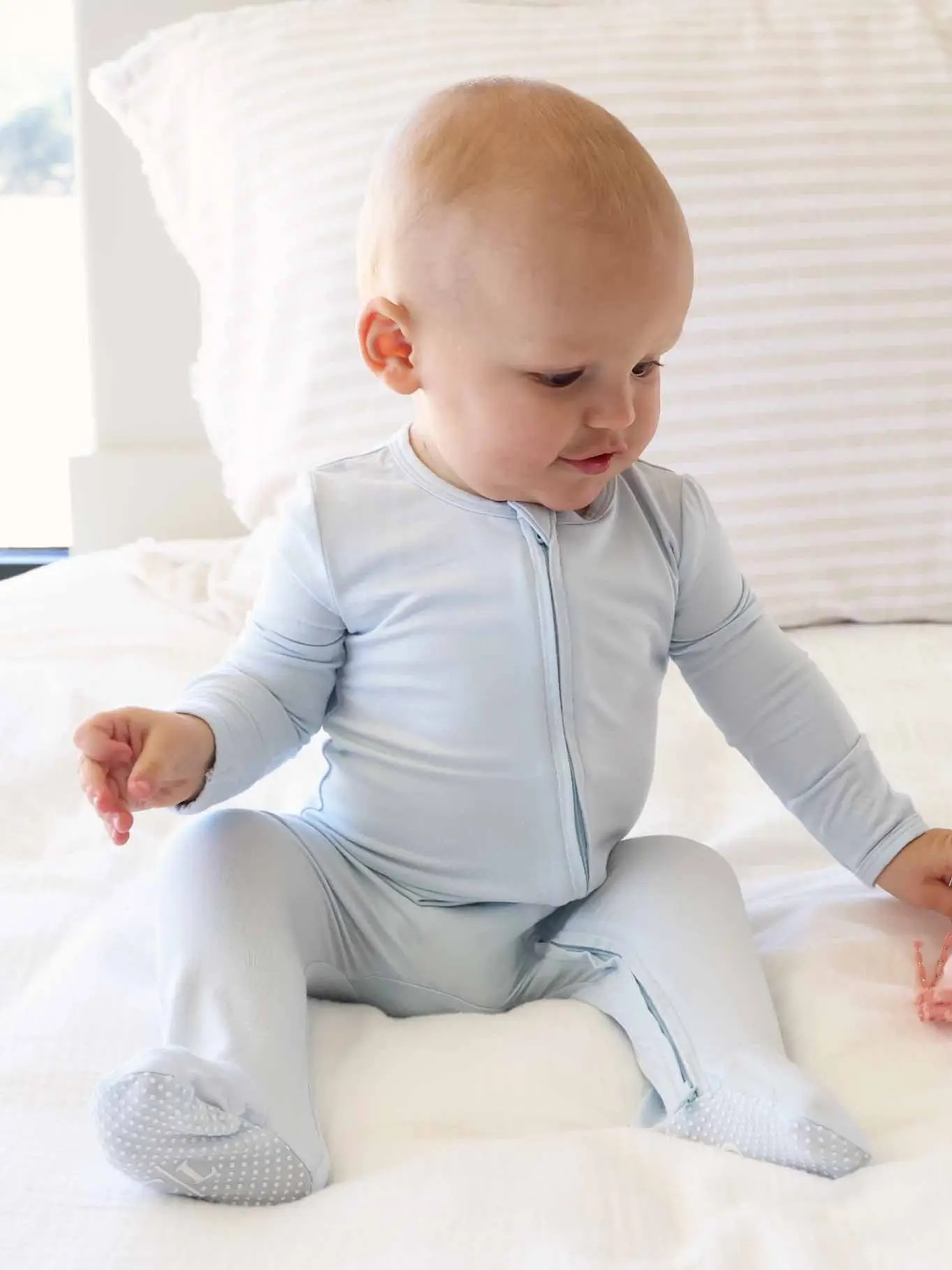 Welcome your little one in ultimate comfort with the Cloud Nine Cuddles Footie. Crafted from luxuriously soft bamboo viscose, this baby blue essential feels like a gentle cloud against delicate skin while remaining lightweight and breathable for all-day wear. The convenient front zipper transforms diaper changes into quick, effortless moments—a game-changer during those precious late-night cuddles. Hospital-ready and picture-perfect, this timeless footie is designed for every milestone from day one, making it the one piece you'll reach for again and again during those fleeting newborn days.