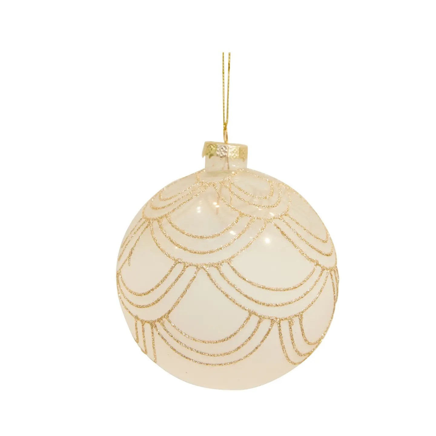 This 4-inch frosted glass ornament combines timeless elegance with festive charm. The delicate frost finish paired with gleaming gold accents creates a sophisticated look that complements any holiday aesthetic. Crafted from premium glass, the multicolor design catches light beautifully, adding depth and visual interest to your tree. The 100MM size makes it substantial enough to serve as a focal point while remaining versatile for various decorating styles. Perfect for collectors or anyone seeking ornaments that balance classic appeal with contemporary refinement.