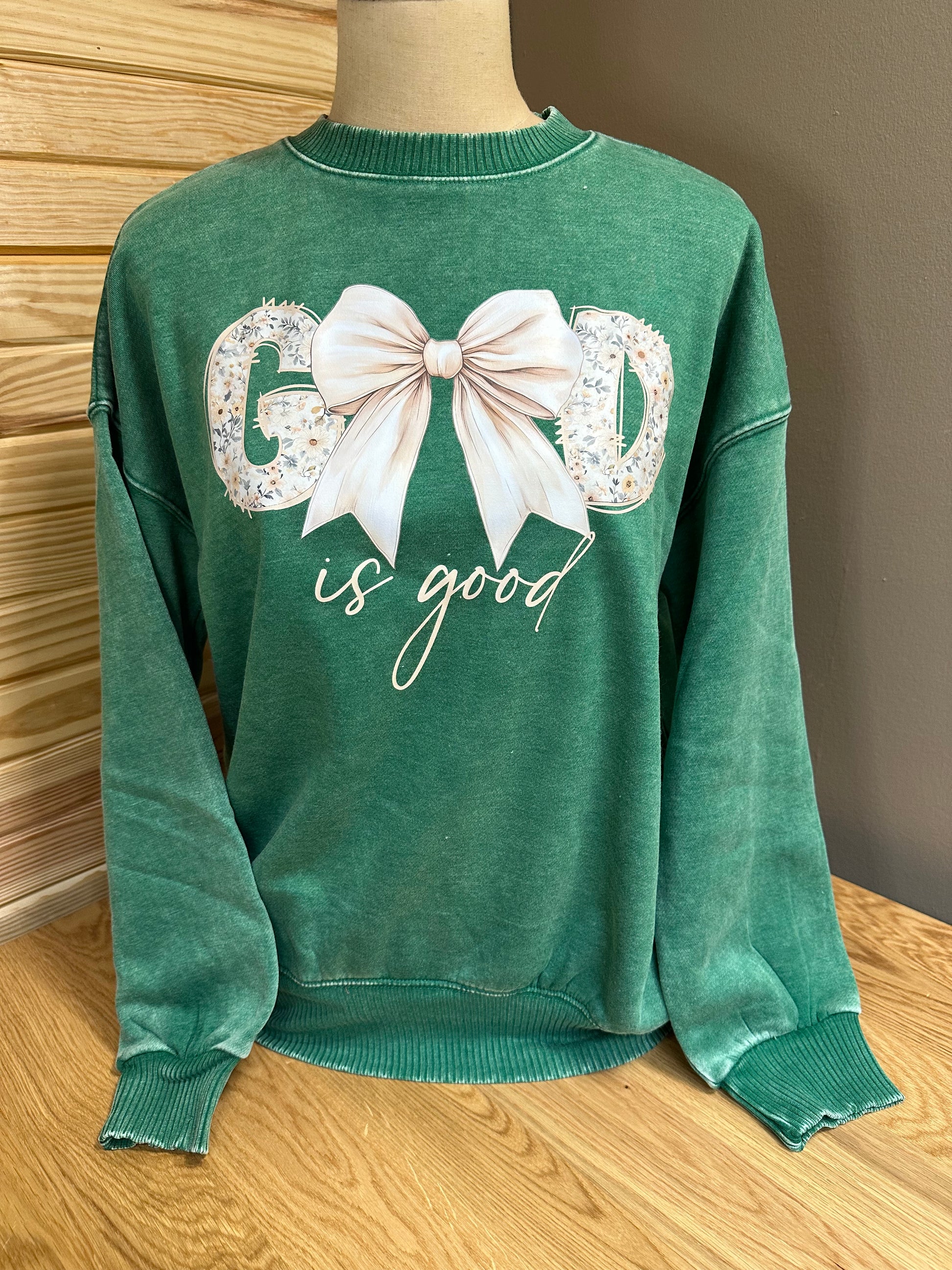 Embrace comfort and faith with this soft sweatshirt featuring a charming pink center bow detail. The "God Is Good" design serves as a daily reminder of gratitude and positivity. Crafted from premium, breathable fabric, this piece offers the perfect blend of style and coziness for everyday wear. Whether you're relaxing at home or stepping out, this versatile sweatshirt pairs effortlessly with your favorite bottoms while making a meaningful statement.