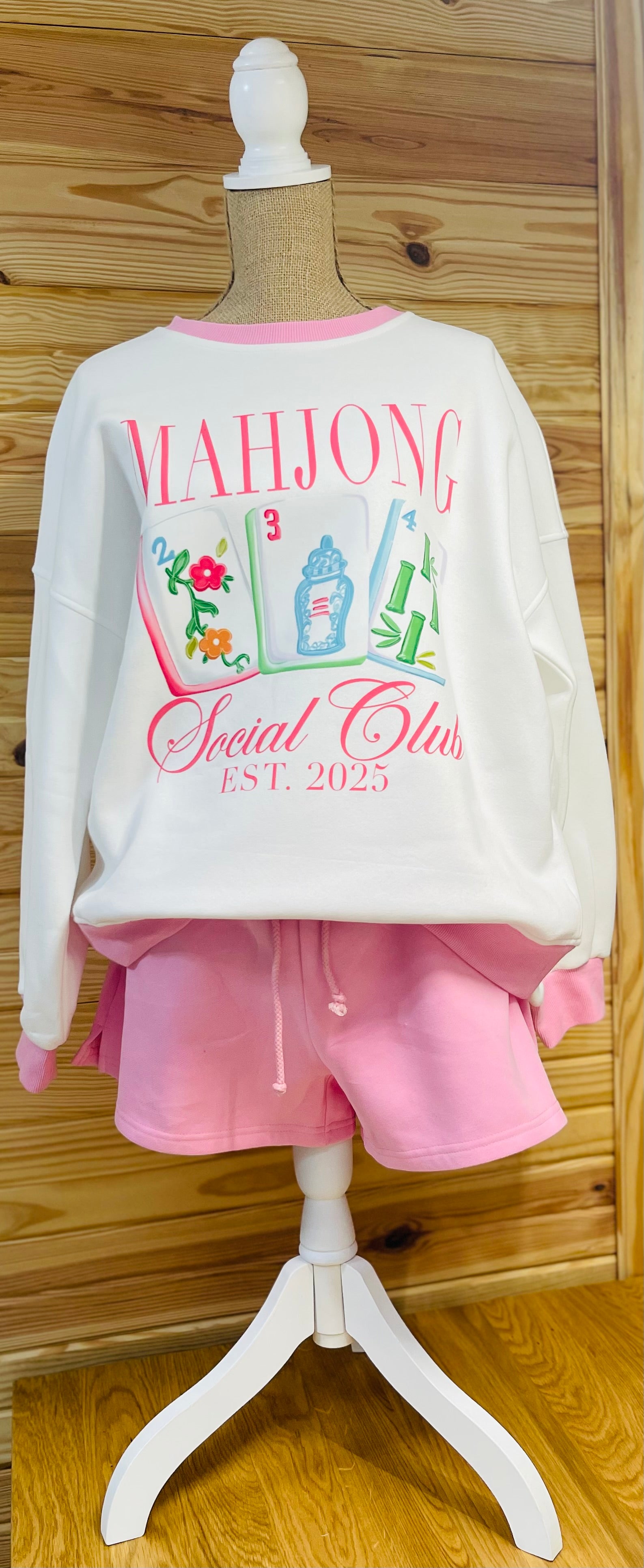 This Mahjong Social Club two-piece sweat set combines comfort and style with its ink base and contrasting white details. Crafted for a relaxed fit, it offers breathable warmth perfect for casual wear or lounging. The coordinated top and bottom feature precise white accents that highlight the set's modern design, making it an effortless choice for a refined yet comfortable look. Ideal for those seeking quality fabric and subtle sophistication in their everyday wardrobe.