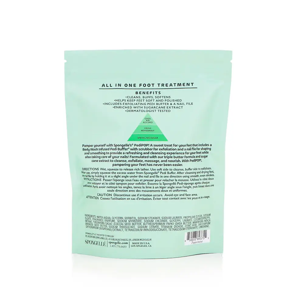 Experience a refreshing foot care ritual with PediPop by SPONGELLE. Infused with peppermint extracts, this treatment cleanses, buffs, and softens your feet, leaving them revitalized and smooth. The set includes a buffer and nail file, providing expert-level care to maintain healthy, polished feet effortlessly.