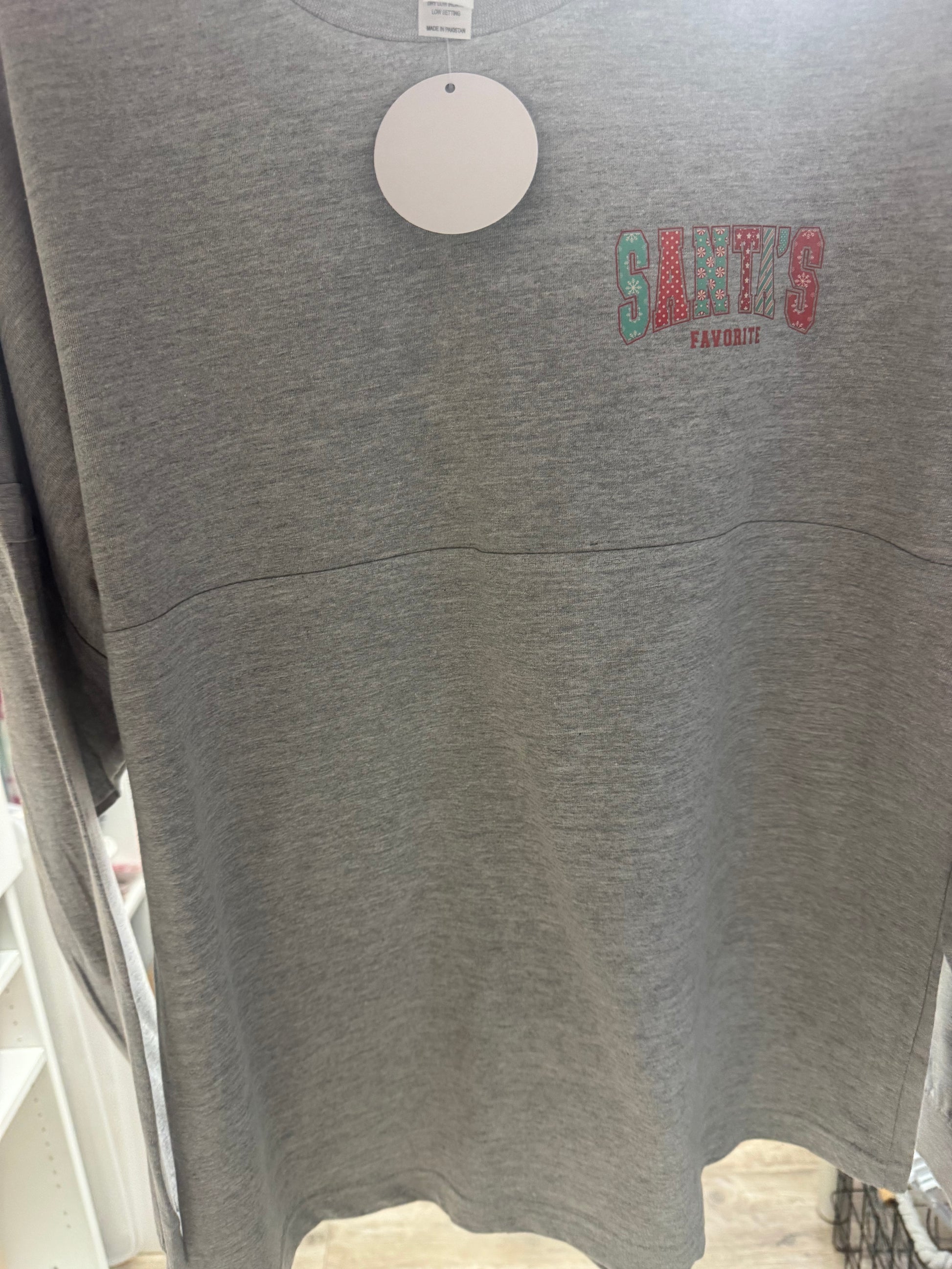 Santa's Favorite Long Sleeve Tee Crafted for comfort and holiday spirit, this long sleeve tee features a classic design that captures the warmth of the season. The soft, breathable fabric ensures all-day wearability, whether you're celebrating with family or running errands around town. Perfect for layering under jackets or wearing solo, this versatile piece transitions seamlessly from casual gatherings to cozy nights in. The durable construction maintains its shape and color through repeated wear and washing, making it a reliable addition to your seasonal wardrobe.