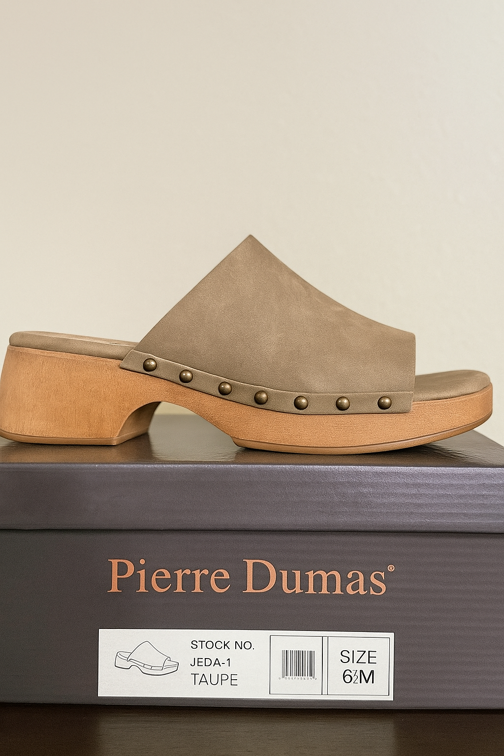 The Rebel Slide combines a stylish wedge heel with soft suede material for lasting comfort and durability. Accented with subtle studs along the side, this design adds an edgy yet refined touch to your look. Perfect for elevating casual outfits while providing stable support throughout the day.